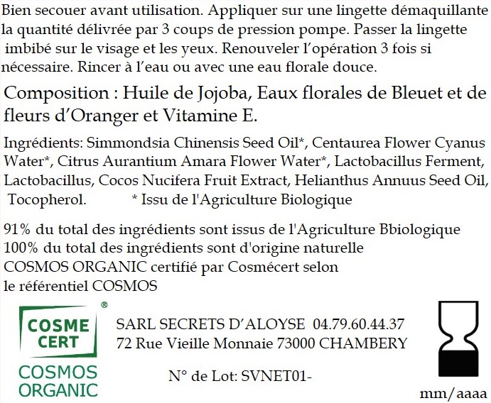 Simmondsia Chinensis Seed Oil* Centaurea Flower Cyanus Water* Citrus Aurantium Amara Flower Water* Lactobacillus Ferment, Lactobacillus, Cocos Nucifera Fruit Extract, Helianthus Annuus Seed Oil, Tocopherol.
