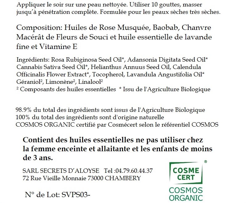 Rosa Rubiginosa Seed Oil* ,Adansonia Digitata Seed Oil*, Cannabis Sativa Seed Oil* ,Helianthus Annuus Seed Oil, Calendula Officinalis Flower Extract*, Tocopherol
