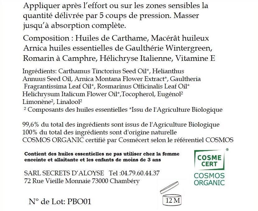 Carthamus Tinctorius Seed Oil*, Helianthus Annuus Seed Oil, Arnica Montana Flower Extract*, Gaultheria