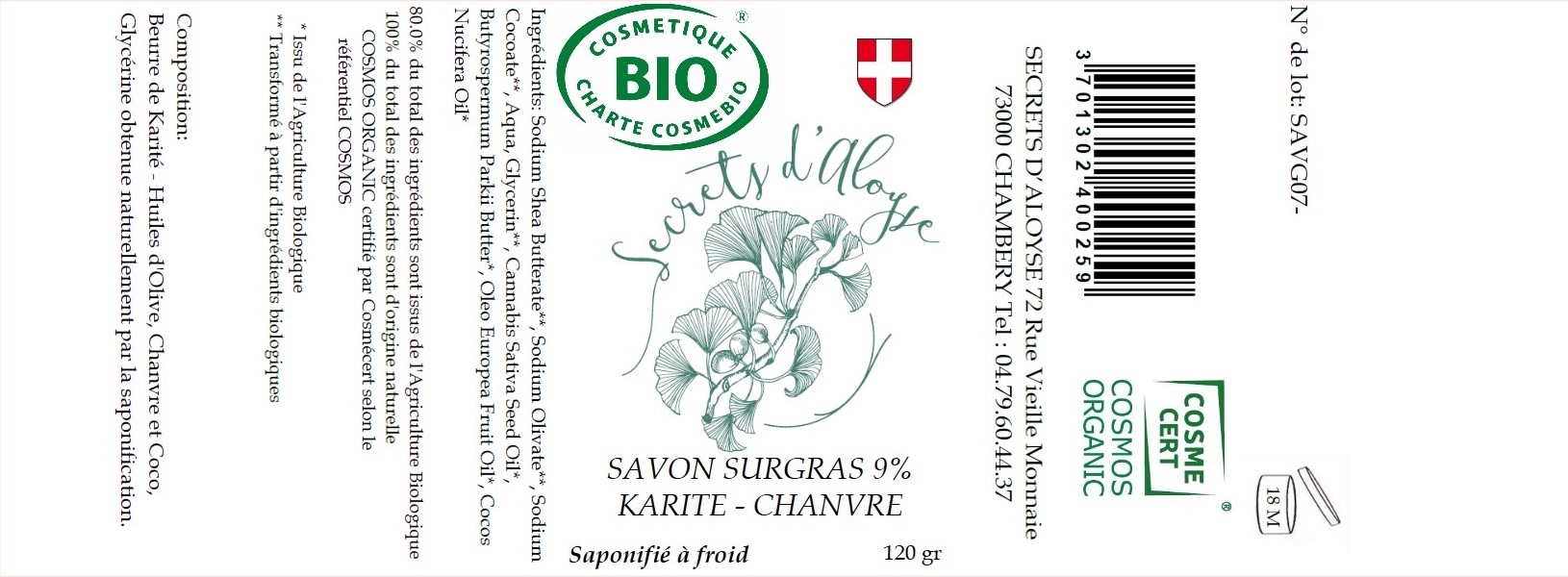 * Issu de l'Agriculture Biologique ** Transformé à partir d'ingrédients biologiques