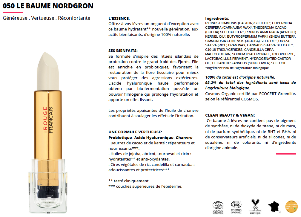Cosmos organic certifié par ECOCERT Greenlife selon le référentiel COSMOS.