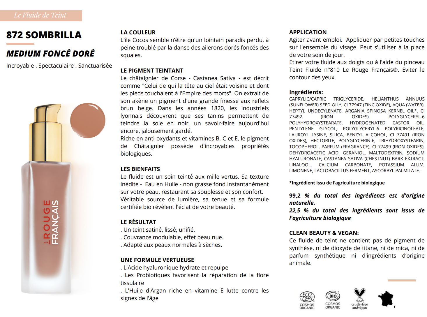 CAPRYLIC/CAPRIC TRIGLYCERIDE, HELIANTHUS ANNUUS (SUNFLOWER) SEED OIL*, CI 77947 (ZINC OXIDE), AQUA (WATER), HEPTYL UNDECYLENATE, ARGANIA SPINOSA KERNEL OIL*, CI 77492 (IRON OXIDES), POLYGLYCERYL-6 POLYHYDROXYSTEARATE, HYDROGENATED CASTOR OIL, PENTYLENE GLYCOL, POLYGLYCERYL-6 POLYRICINOLEATE, LAUROYL LYSINE, SILICA, BENZYL ALCOHOL, CI 77491 (IRON OXIDES), HECTORITE, POLYGLYCERIN-6, TRIHYDROXYSTEARIN, TOCOPHEROL, PARFUM (FRAGRANCE), CI 77499 (IRON OXIDES), DEHYDROACETIC ACID, GERANIOL, MALTODEXTRIN, SODIUM HYALURONATE, CASTANEA SATIVA (CHESTNUT) BARK EXTRACT, LINALOOL, CALCIUM CARBONATE, POTASSIUM ALUM, LIMONENE, LACTOBACILLUS FERMENT, ASCORBYL PALMITATE.