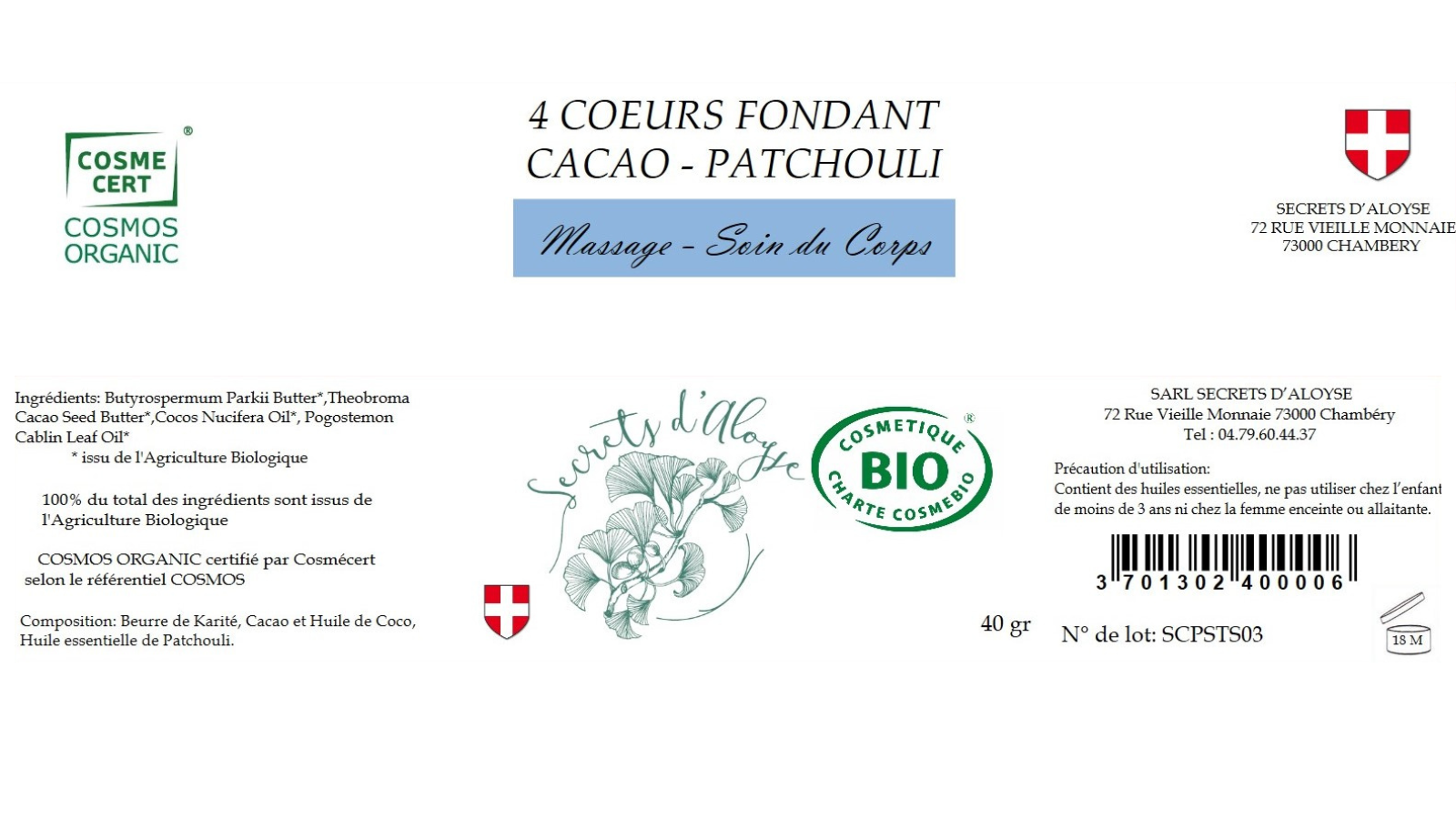 Butyrospermum Parkii Butter*,Theobroma Cacao Seed Butter*,Cocos Nucifera Oil, Pogostemon Cablin Leaf Oil*