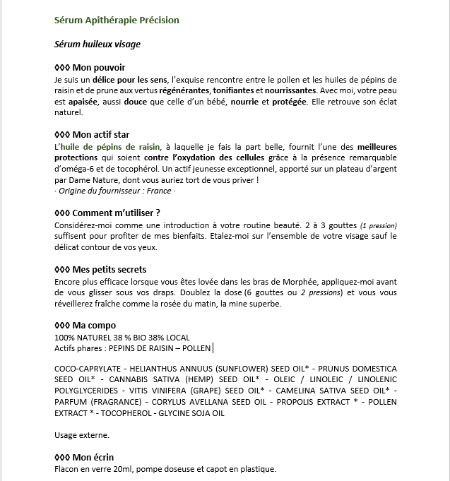 propolis extract* – pollen extract* – tocopherol – glycine soja oil.